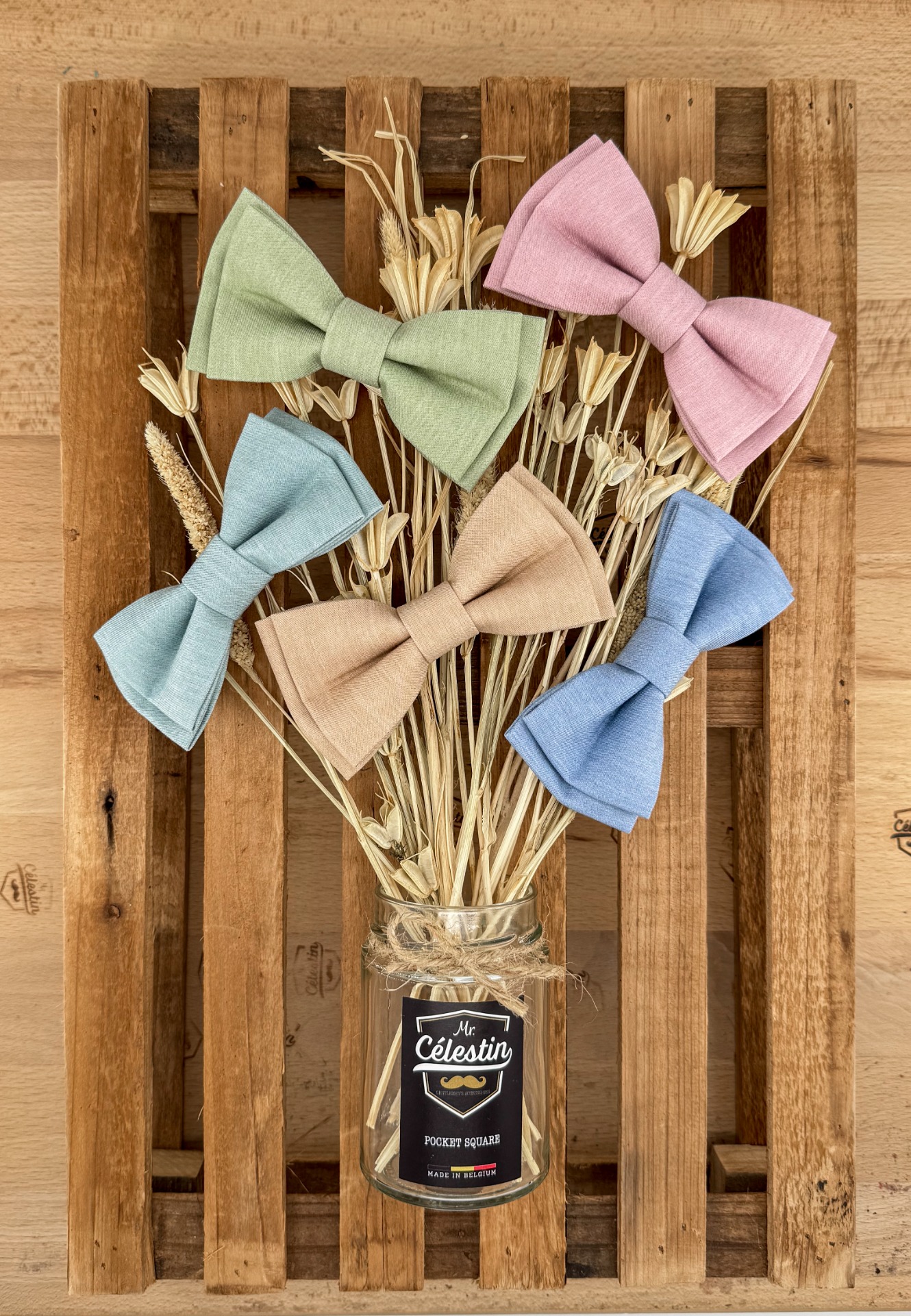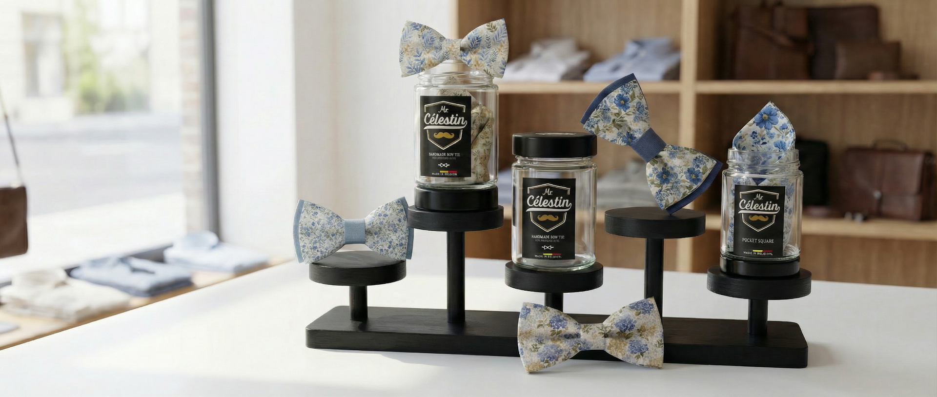 Depuis 2015, Mr. Célestin crée et fabrique en Belgique des accessoires pour hommes : nœuds papillon, cravates, pochettes ...